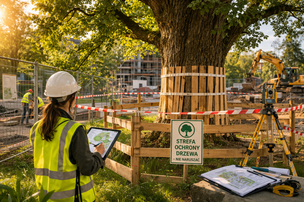 Ochrona drzew na placu budowy to jeden z kluczowych elementów prowadzenia inwestycji w terenie zurbanizowanym. W praktyce to właśnie na etapie robót budowlanych najczęściej dochodzi do uszkodzeń systemów korzeniowych, zagęszczenia gleby czy mechanicznego zniszczenia pni i koron drzew. Skutki takich działań często ujawniają się dopiero po zakończeniu inwestycji, a odpowiedzialność – zarówno techniczna, jak i administracyjna – spoczywa na inwestorze.